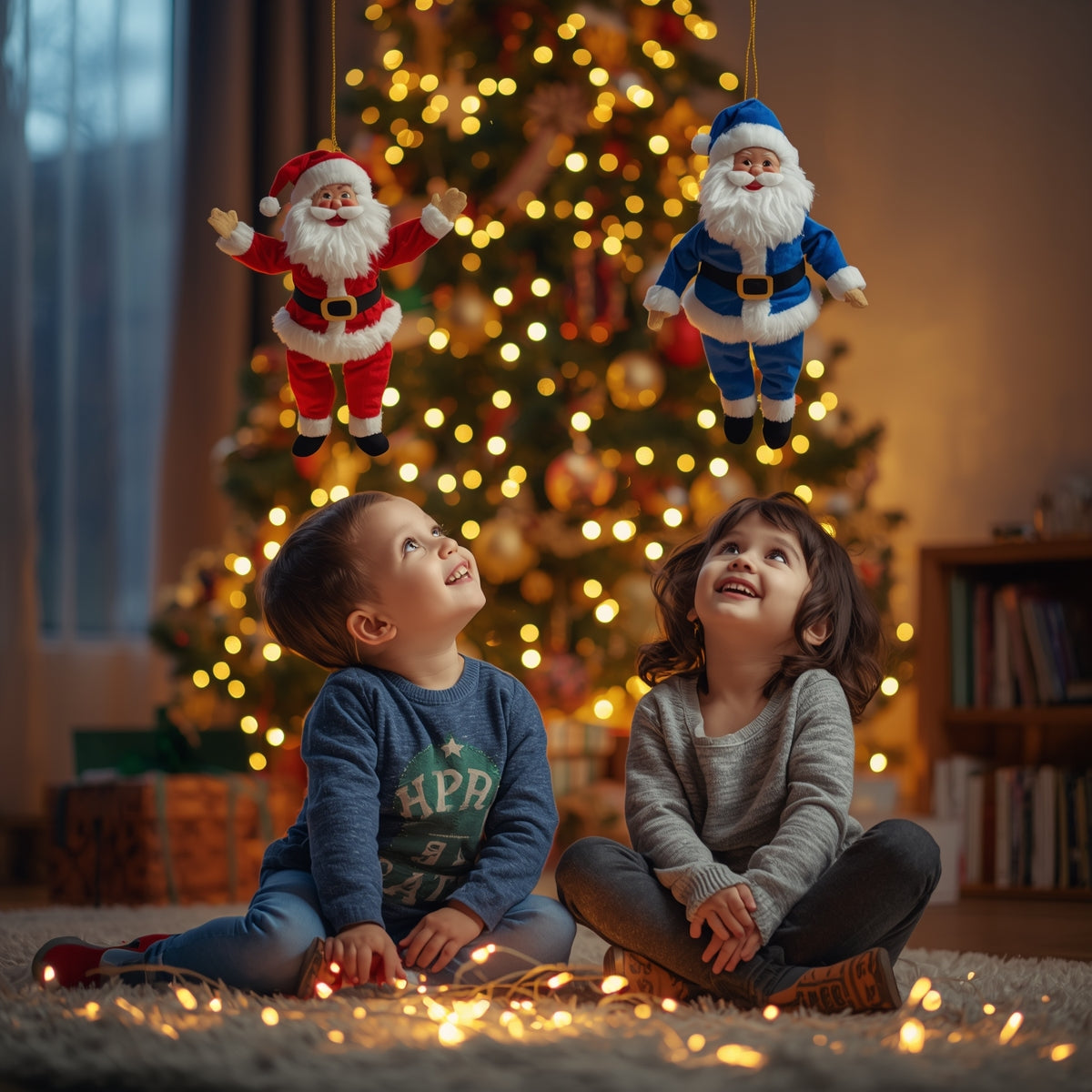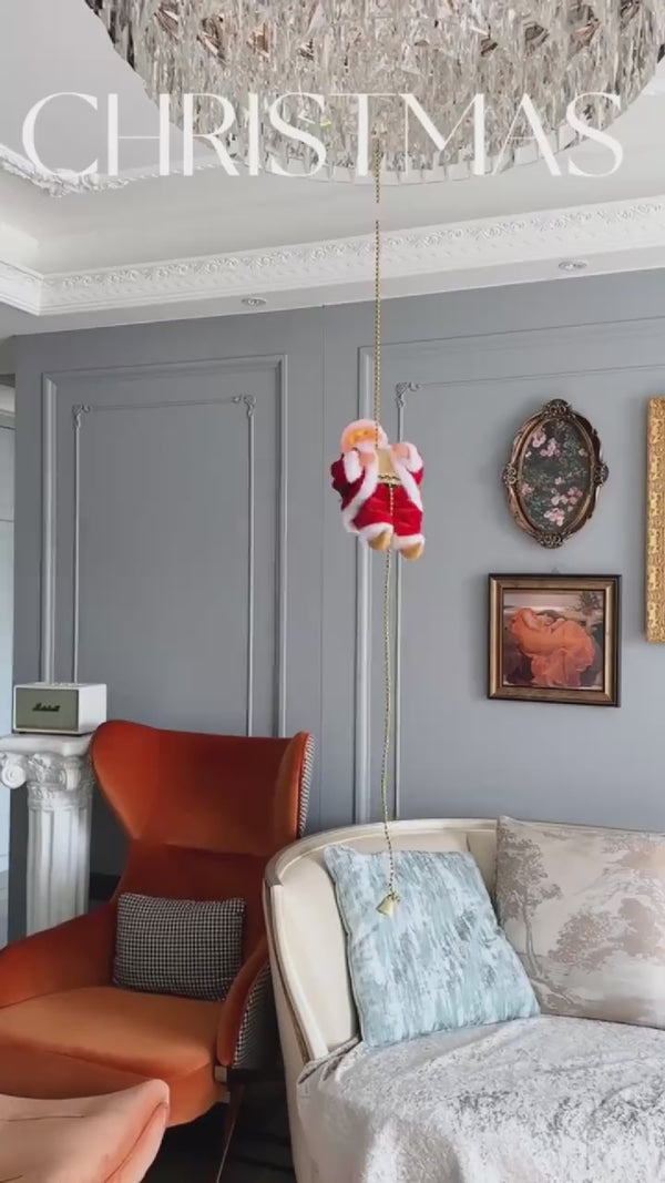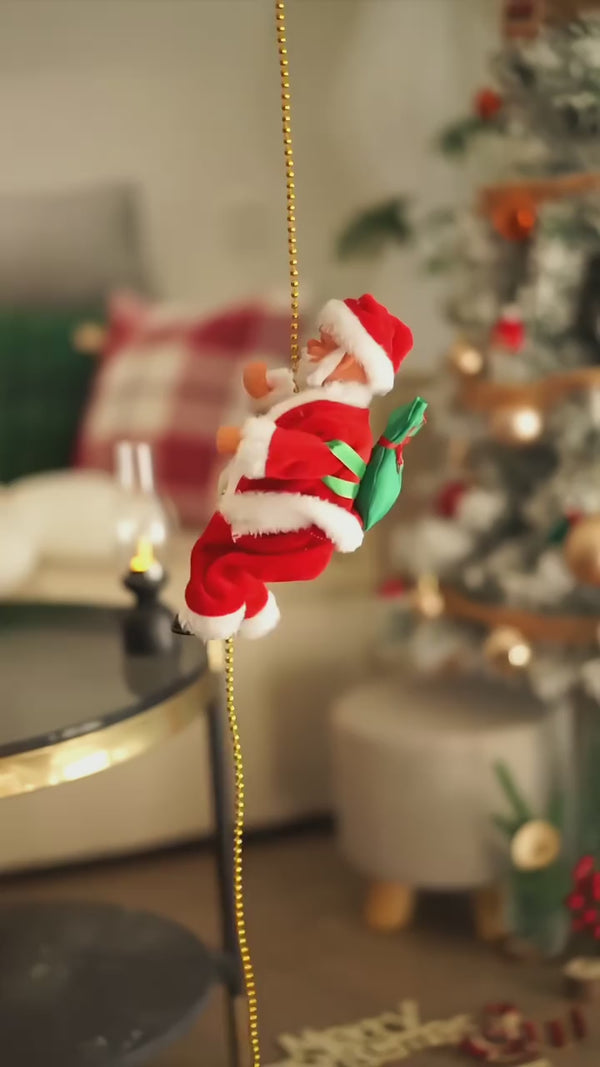 Ce Père Noël Grimpant™ monte et descend automatiquement sur sa corde dorée, créant une animation douce, vivante et hypnotisante qui émerveille les enfants autant que les adultes.